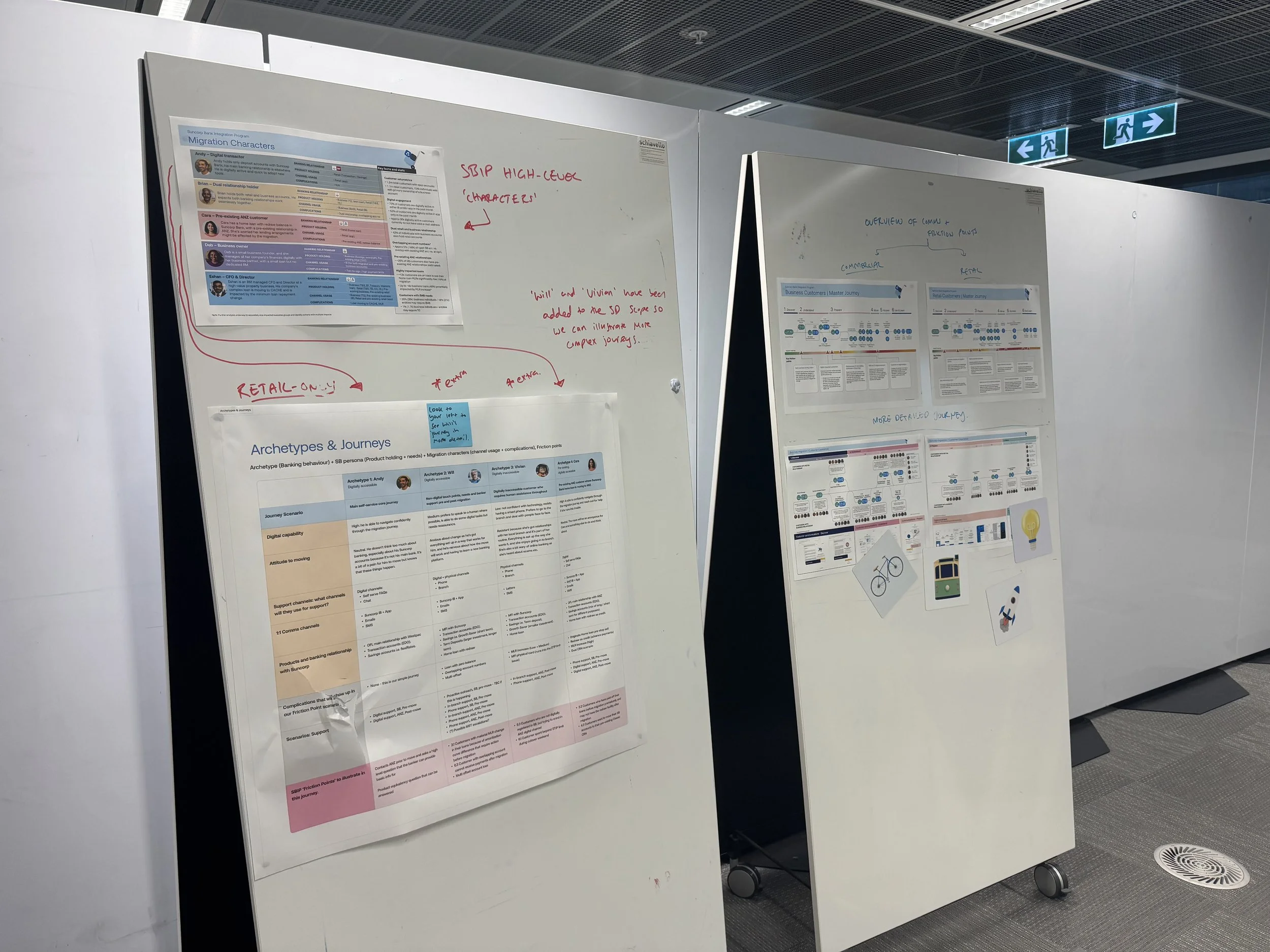 Behaviour was the foundation of the final archetypes, it drives how customer will react and interact with the banks after receiving migration comms. In the blueprints, this surfaced the sequencing needed between comms, banker, and system teams.