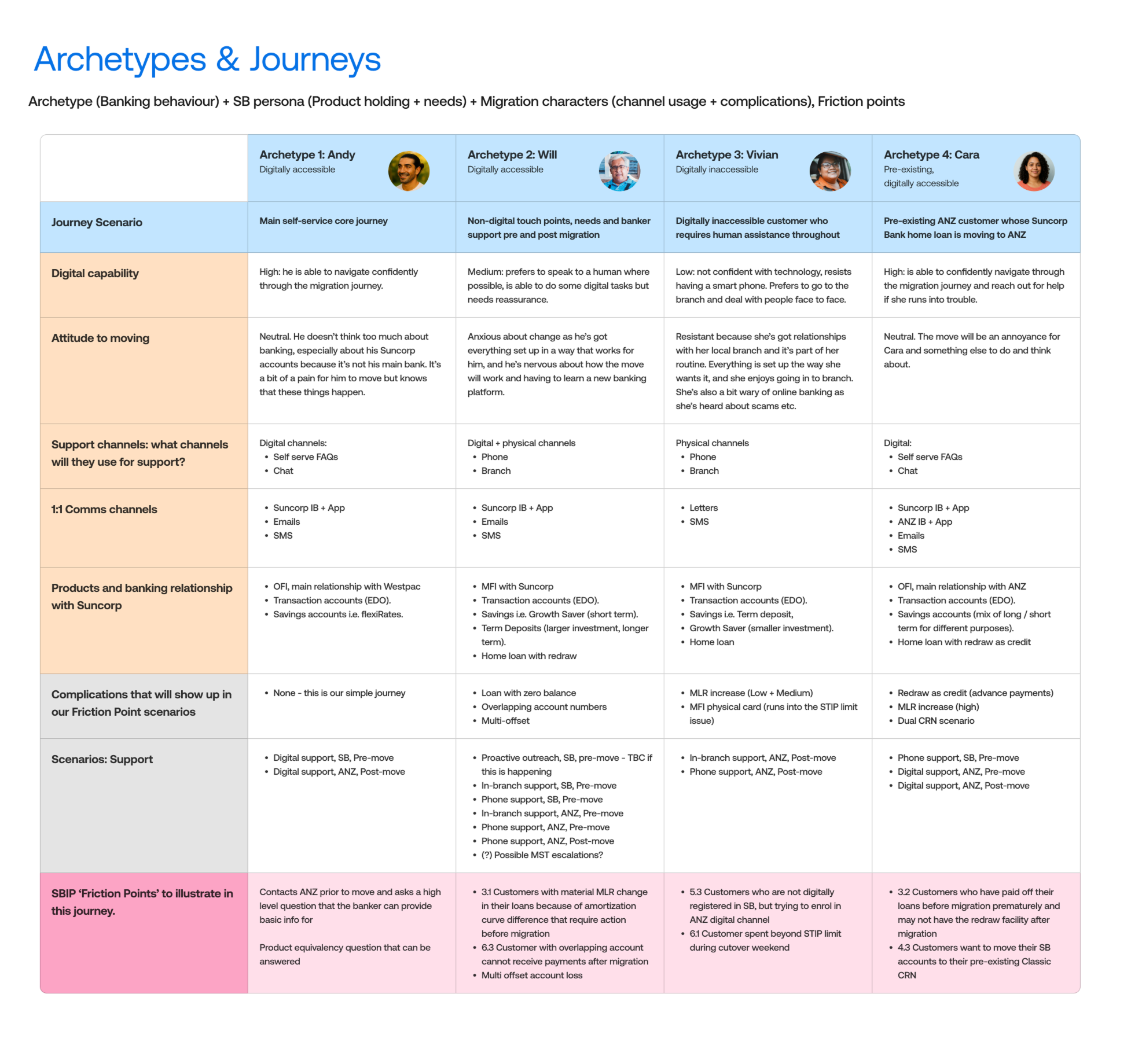 From 12 archetypes down to 4, agreed upon across both Suncorp Banks and ANZ on customer types.