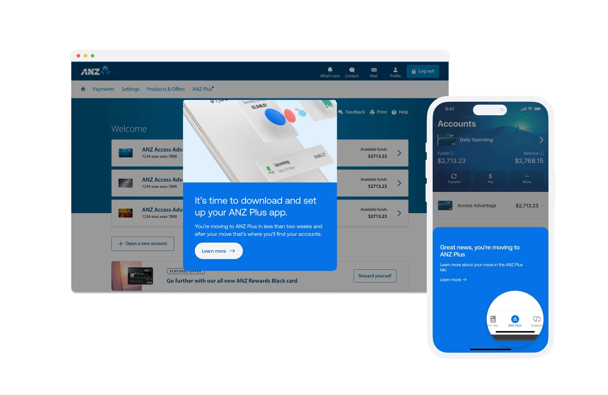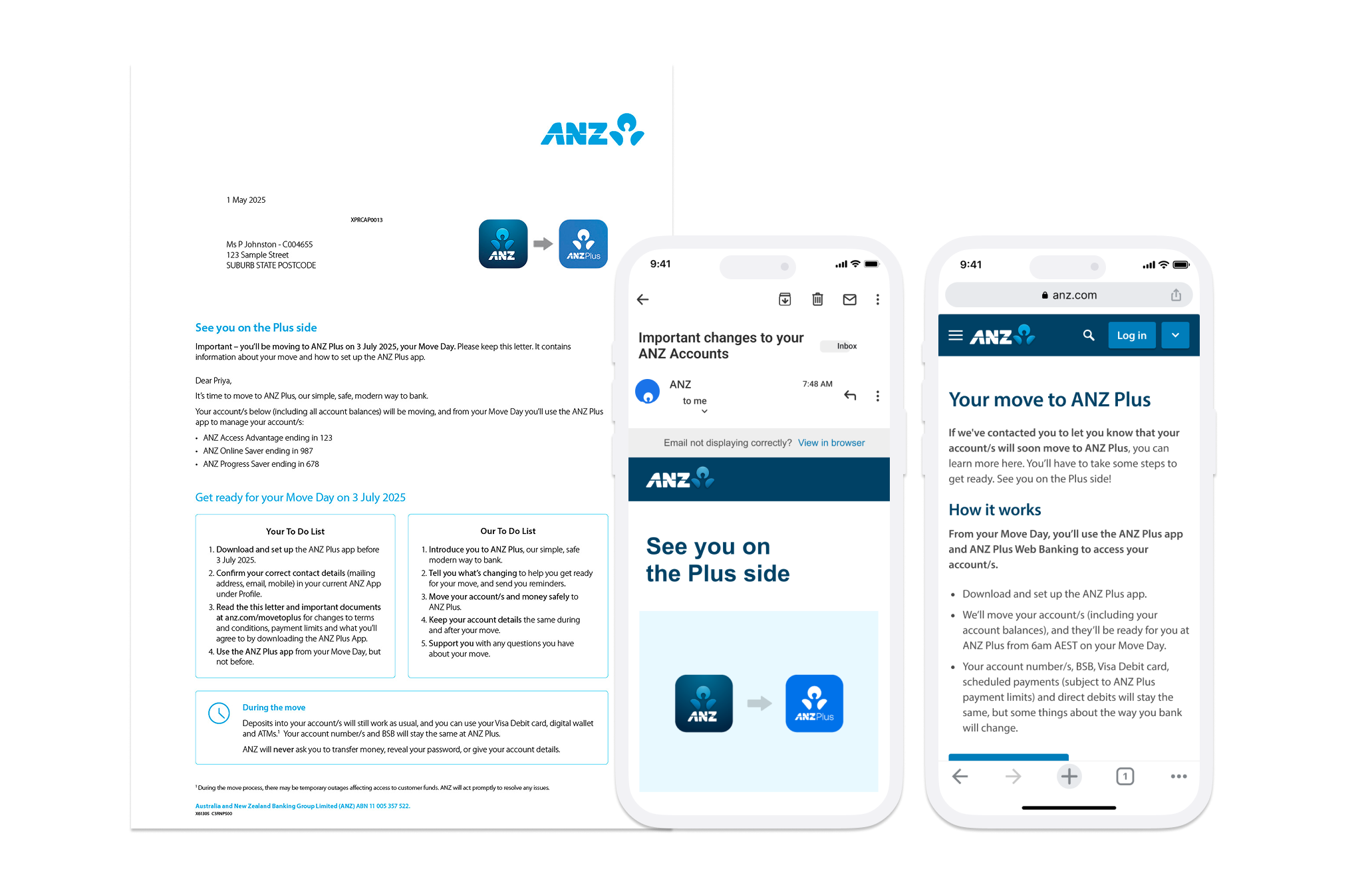 In Phase 1, customers would receive communications about their move. They'd have a period to download and set up the ANZ Plus app. If they didn't act by move day, they'd be locked out.