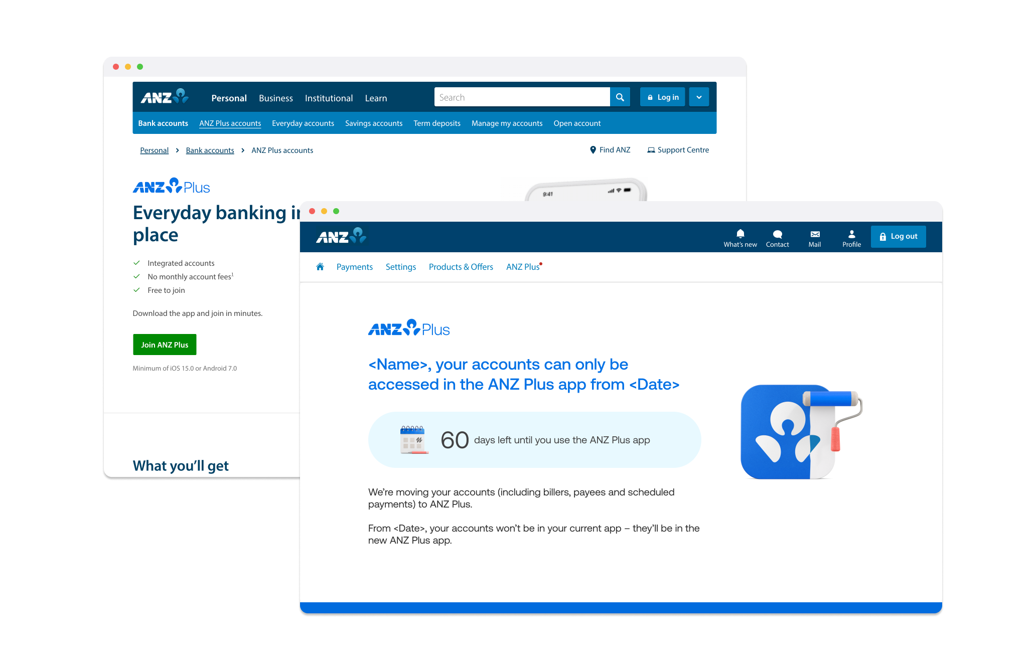 We want to make sure customers trust the communication the bank sends them to take action in time. Customers see ANZ and ANZ Plus as one bank, but user research showed they can identify the difference in visual language.