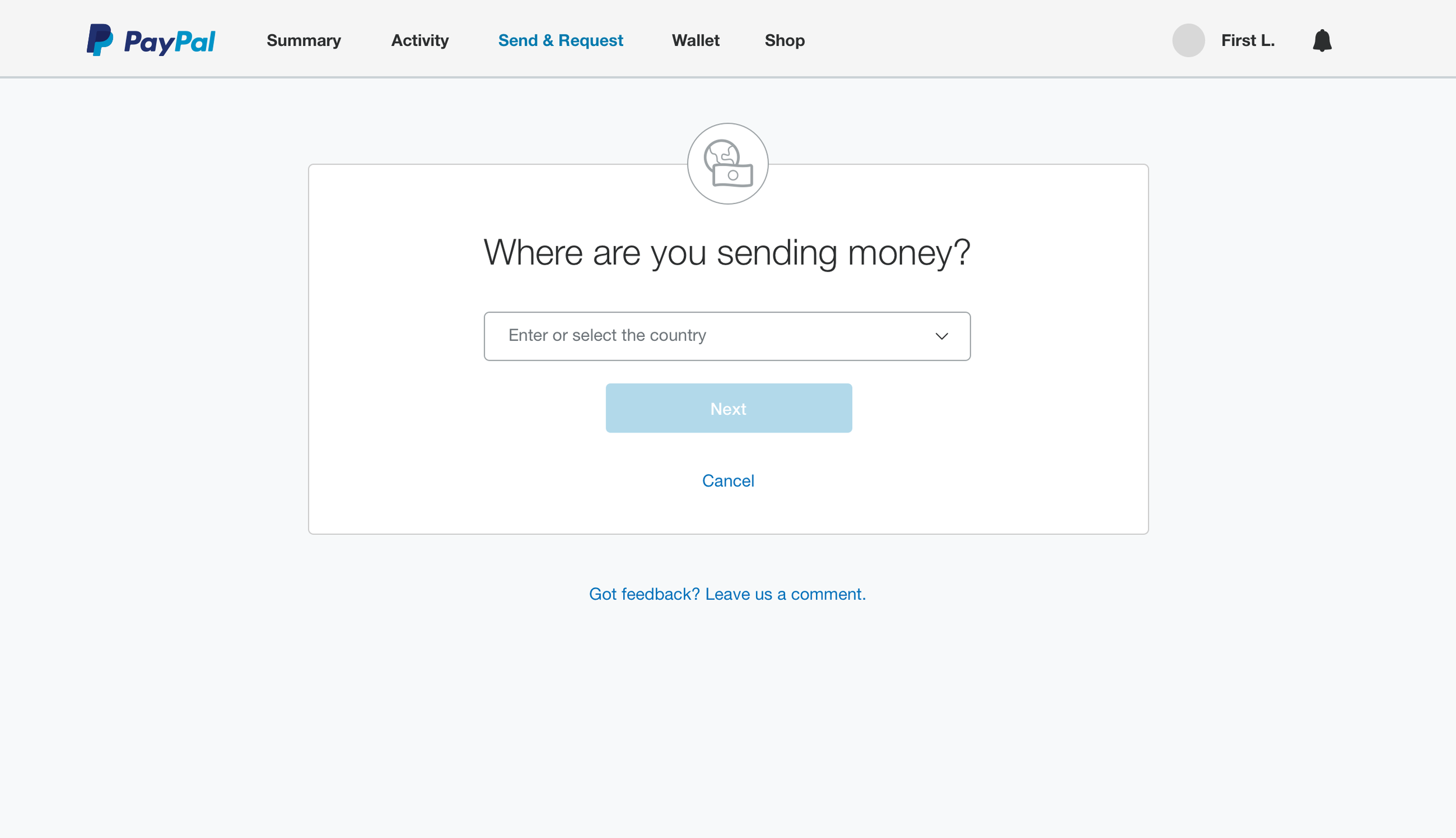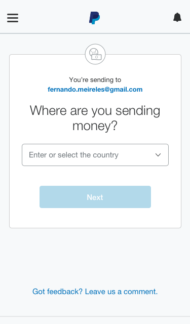 We now need to know where is the user sending money to. So we can show them what Xoom and PayPal products they can use.