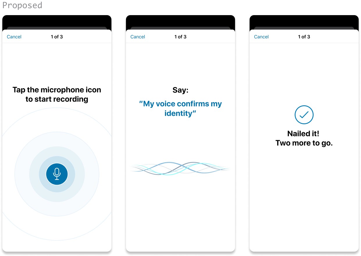 Voice ID is ANZ's voice biometric verification for the mobile app. Customers authenticate high-risk actions by speaking a passphrase. The product manager engaged our team to improve enrolment and verification success rates.